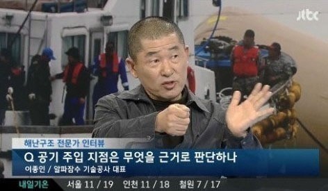 이종인 대표는 지난 18일 JTBC ‘뉴스9’에 출연해 “조타실에 해당되는 곳에 공기 주입을 하는데 이해가 안 된다”고 지적했다.