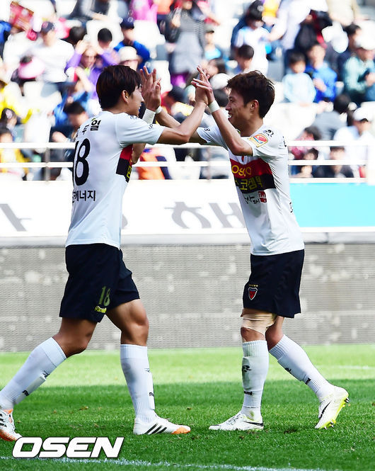 K리그 챔피언 포항은 지난 16일 아시아축구연맹 챔피언스리그(ACL) 16강 진출을 확정지었다. 2010년 8강에 오른 뒤 4년 만에 거둔 쾌거였다. 조별리그 5차전을 위해 일본 원정길에 오른 포항은 이명주의 선제골과 김승대의 추가골을 묶어 세레소 오사카를 2-0으로 완파하고 16강 티켓을 따냈다. 이미 승점 11점으로 경쟁자들을 따돌린 포항은 오는 23일 안방에서 열리는 부리람(태국)과 조별리그 최종전도 부담이 없다.