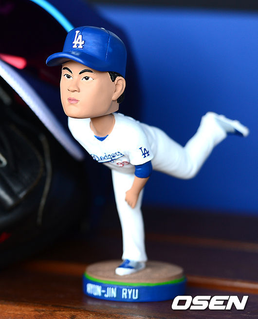 다저스 더그아웃에 류현진의 버블헤드가 놓여져 있다.