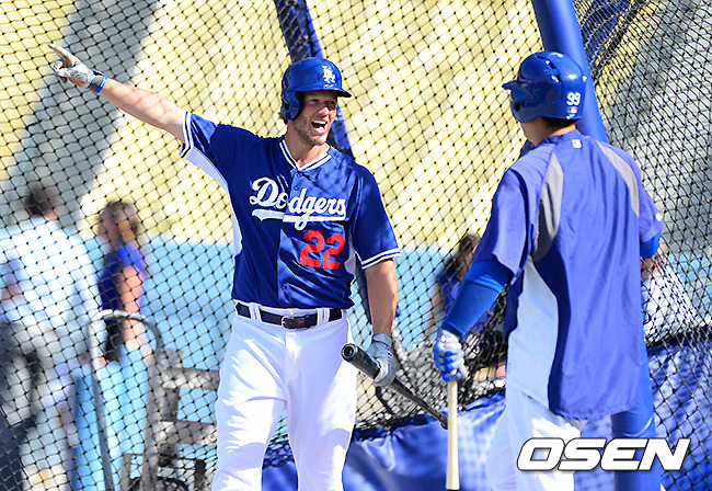 경기에 앞서 다저스 커쇼와 류현진이 타격 훈련을 하고 있다.