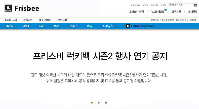 프리스비는 오는 30일 강남스퀘어점에서 진행 예정이던 '프리스비 럭키백 시즌2' 행사를 진도 여객선(세월호) 참사를 애도를 위해 연기하기로 결정했다고 밝혔다.