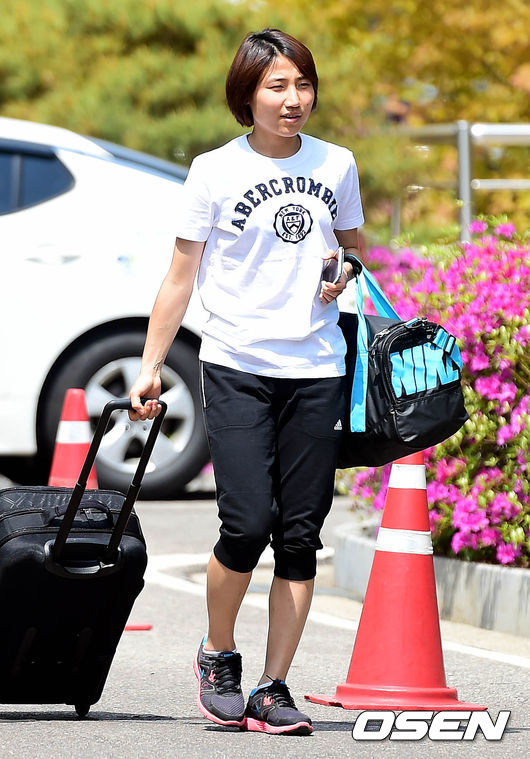 여자 축구대표팀 여민지가 22일 오후 파주 NFC(국가대표 트레이닝센터)에 들어서고 있다.