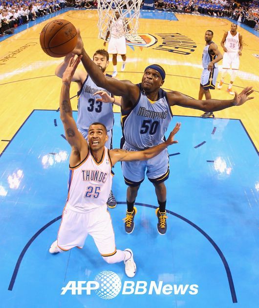 한편 앞서 펼쳐진 멤피스 그리즐리스와 오클라호마시티 썬더(이하 OKC)의 2차전에서는 멤피스가 111-105로 승리를 거둬 1승 1패가 됐다. 양 팀은 시종일관 치열하게 싸웠다. 5점을 뒤지던 OKC는 4쿼터 종료 13.8초를 남기고 케빈 듀런트가 4점 플레이에 성공했다. 이어 마이크 콘리의 자유투 1구가 실패하는 행운도 따랐다. 4쿼터 종료와 동시에 던진 센터 켄드릭 퍼킨스의 골밑슛이 극적으로 림을 통과해 OKC는 연장전에 돌입했다.