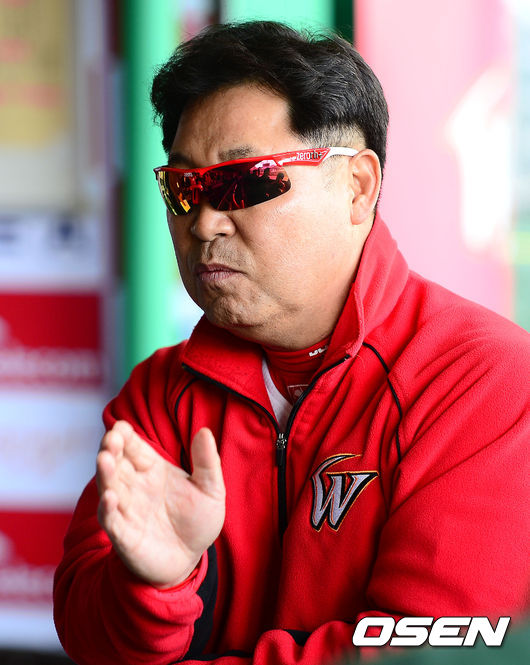 경기에 앞서 SK 이만수 감독이 인터뷰를 갖고 있다.