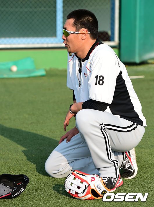 경기에 앞서 LG 이동현이 훈련 준비를 하고 있다.