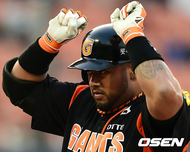 22일 오후 서울 목동구장에서 열린 '2014 한국야쿠르트 세븐 프로야구' 넥센 히어로즈와 롯데 자이언츠의 경기 1회초 1사 1,2루 히메네스가 1타점 적시타를 치고 기뻐하고 있다.