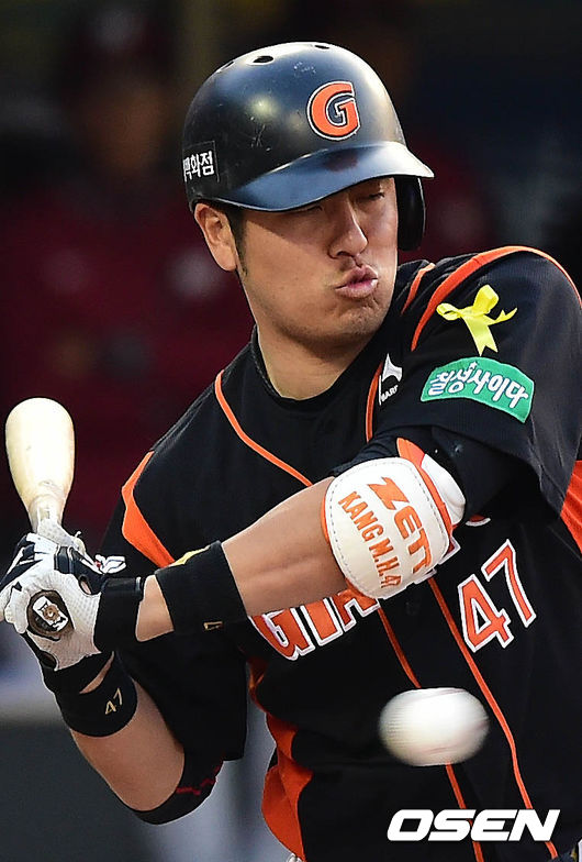 22일 오후 서울 목동구장에서 열린 '2014 한국야쿠르트 세븐 프로야구' 넥센 히어로즈와 롯데 자이언츠의 경기 강민호가 노란리본을 달고 경기에 임하고 있다.