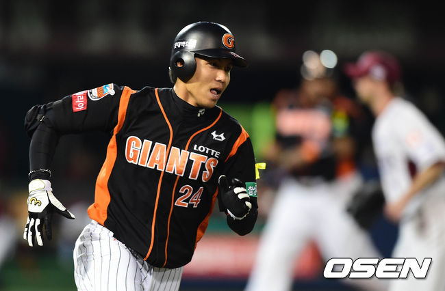 22일 오후 서울 목동구장에서 열린 '2014 한국야쿠르트 세븐 프로야구' 넥센 히어로즈와 롯데 자이언츠의 경기 3회초 2사 만루 김문호가 2타점 적시타를 치고 달리고 있다.