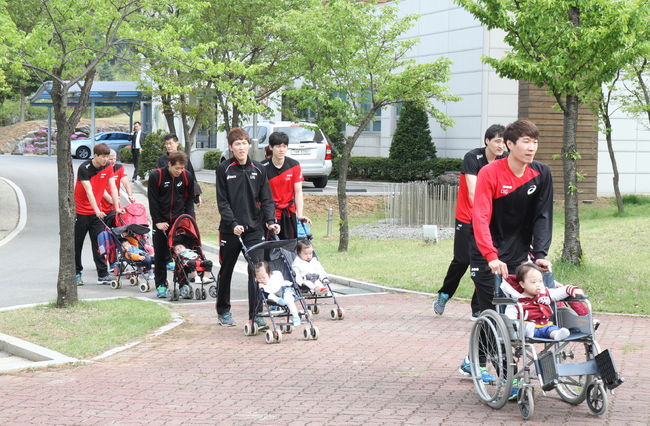 LIG손해보험 선수단은 지난 22일 '한사랑장애영아원'을 찾아 아이들과 함께 야외활동에 나섰다. 이번 행사는 지난 20일 장애인의 날을 맞이하여 기획된 것으로, LIG손해보험 선수들은 평소에 외부활동이 힘든 영유아원 아이들과 3인 1조로 조를 이루어 곤지암 소재 도자공원을 산책하며 즐거운 시간을 보냈다.