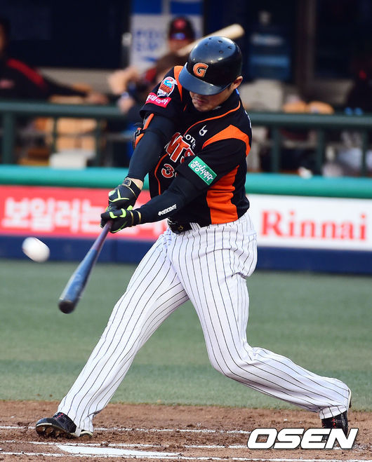 1회초 2사 2루 롯데 박종윤이 우월 투런홈런을 날리고 있다.