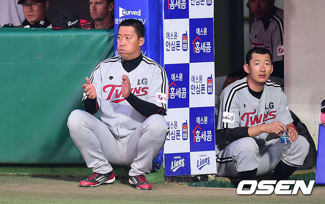 2회초 LG 이병규가 동료들을 향해 박수를 보내고 있다.