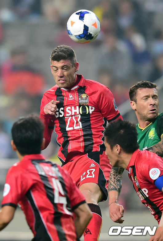 23일 오후 서울 월드컵경기장에서 열린 2014 AFC 챔피언스리그 F조 조별리그 최종전 FC 서울과 베이징 궈안의 경기 전반 오스마르가 헤딩슛을 시도하고 있다.