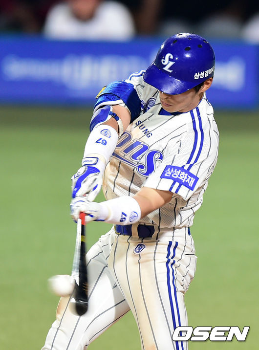 8회말 무사 2,3루에서 삼성 이영욱이 중전 적시타를 치고 있다.