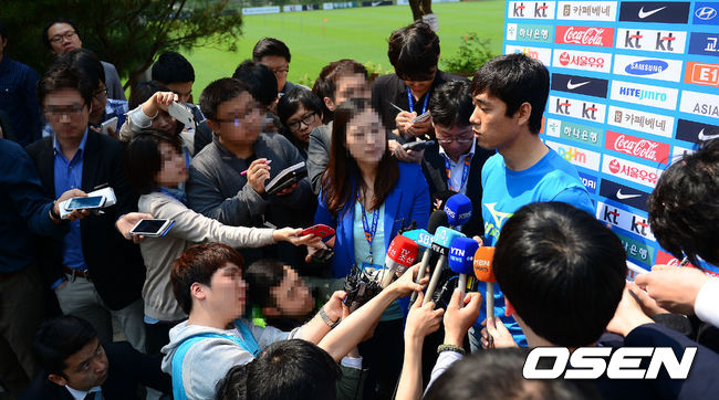 훈련에 앞서 박주영이 기자회견을 갖고 있다.