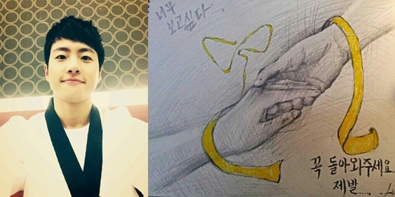 공개된 사진 속에는 맞잡은 두 손에 노란 리본이 묶여 있는 모습이 담겨 있다. 또한 '너무 보고 싶다', '꼭 돌아와 주세요. 제발' 등의 글이 적혀있어 필독의 간절한 마음을 엿볼 수 있다.