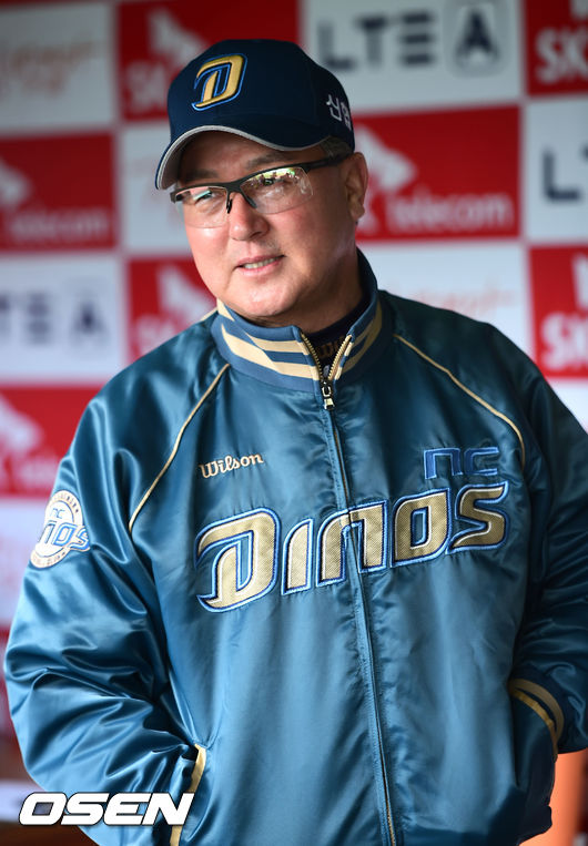 24일 오후 인천 문학구장에서 열린 2014 한국야쿠르트 세븐 프로야구 SK 와이번스와 NC 다이노스의 경기에 앞서 NC 김경문 감독이 인터뷰를 하고 있다.