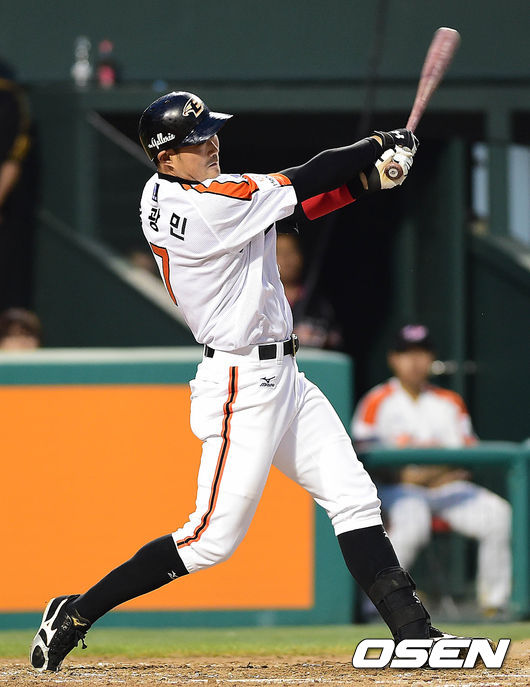 2회말 한화 공격 1사 1루 상황 송광민이 역전 중월 투런포를 날리고 있다.