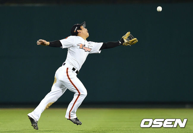 5회초 두산 공격 2사 1루 상황 민병헌의 2루수 키를 넘기는 안타 때 한화 2루수 정근우가 점프해 잡으려 했지만 놓치고 있다.