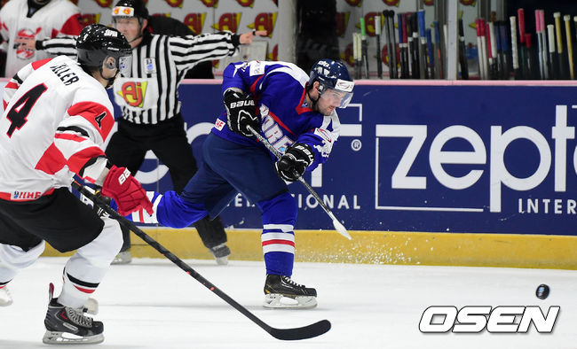 24일 오후 고양시 어울림누리 아이스링크에서 열린 '2014 고양 세계아이스하키 세계선수권대회' 디비전1 그룹A 한국과 일본의 경기 1피리어드 마이클 스위프트가 슛을 시도하고 있다.