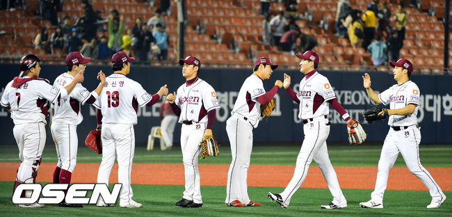경기종료, 승리한 넥센 선수들이 인사를 나누고 있다. /ouxou@osen.co.kr