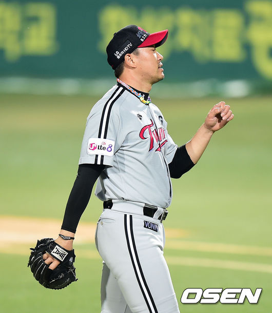 9회말 1사 만루에서 LG 봉중근이 밀어내기 볼넷을 허용하며 아쉬워하고 있다.