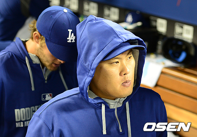 경기후 다저스 류현진이 더그아웃을 나서고 있다. /jpnews@osen.co.kr