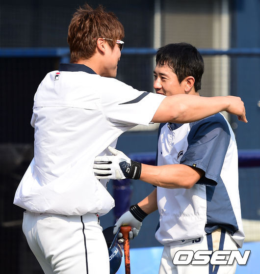 홍성흔-손시헌,'반가움에 와락'