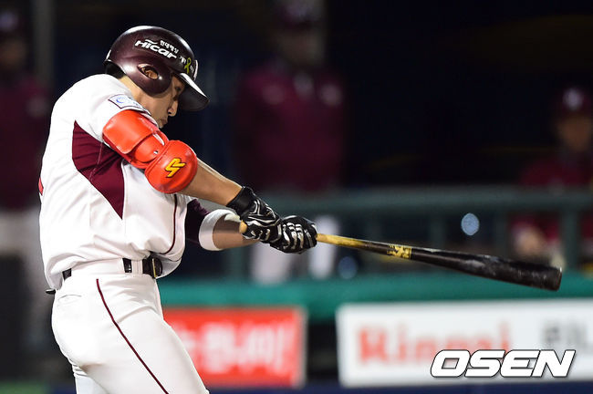5회말 2사 주자없는 상황에서 넥센 서건창이 중견수 오른쪽 1루타를 날리고 있다.