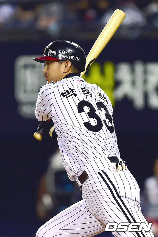 5회말 2사 2루 LG 박용택이 적시타를 때리고 있다.