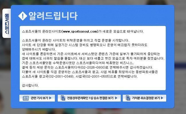 새단장을 준비 중인 스포츠서울 홈페이지.