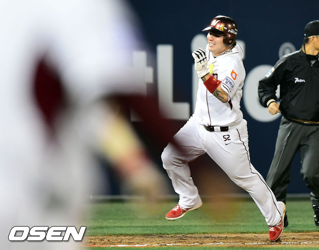 6회말 1사 1, 2루 로티노의 좌익수 앞 1루타 때 2루주자 박병호가 홈을 향해 뛰고 있다.