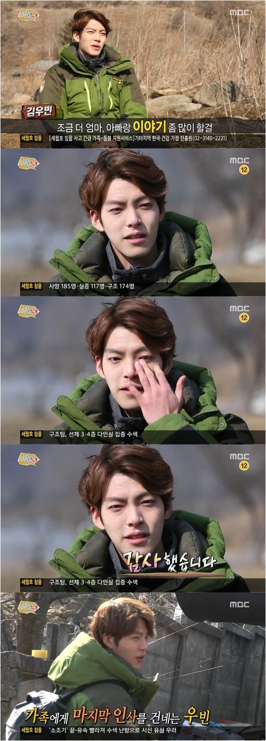 배우 김우빈이 가상 부모와의 아쉬운 이별에 눈물을 흘렸다.