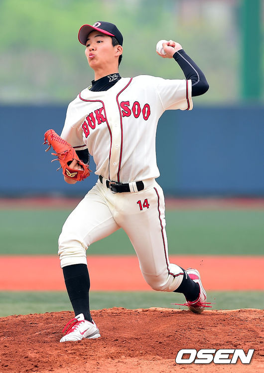 26일 오전 서울 신월야구장에서 열린 '2014 고교야구 주말리그' 덕수고와 배재고의 경기, 4회말 무사 1루 덕수고 이재혁이 마운드에 올라 역투하고 있다.