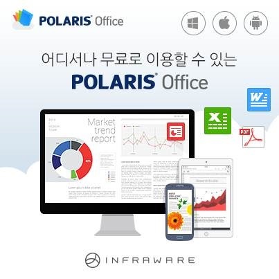 최근 클라우드 기반의 모바일 오피스 시장 경쟁이 가속화 되고 있는 가운데 소프트웨어 전문기업 인프라웨어가 무료 오피스인 '폴라리스 오피스'를 출시해 본격적인 모바일 오피스 시장에 뛰어들었다.