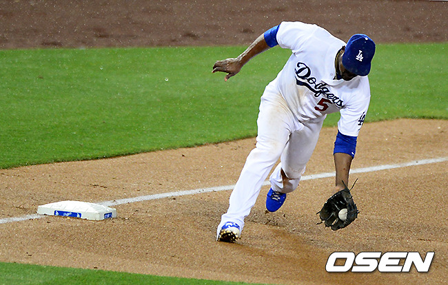 10회초 1사에서 다저스 유리베가 콜로라도 로사리오의 3루땅볼 타구를 처리하고 있다. /jpnews@osen.co.kr