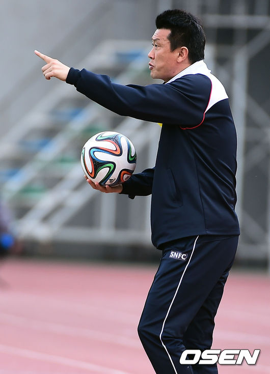 26일 오후 경기도 성남시 탄천종합운동장서 열린 '현대오일뱅크 K리그 클래식 2014' 성남FC와 전남 드래곤즈와의 경기, 전반 성남 이상윤 감독대행이 선수들에게 작전을 지시하고 있다.