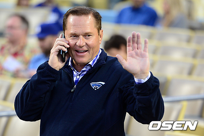 경기에 앞서 스캇 보라스가 통화를 하며 경기를 기다리고 있다. /jpnews@osen.co.kr