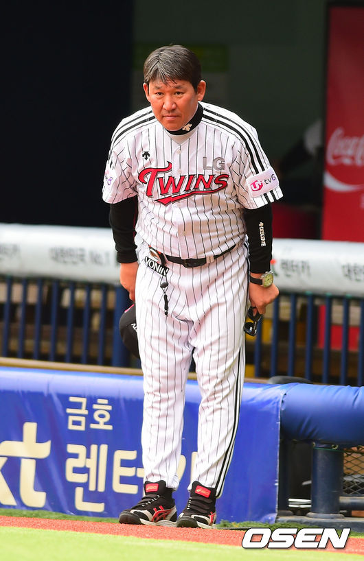 경기에 앞서 LG 조계현 감독대행이 3루 KIA 더그아웃을 향해 인사를 하고 있다.