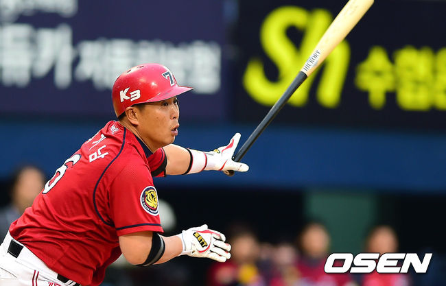 4회초 2사 2,3루 KIA 박기남이 2타점 적시타를 때리고 있다.