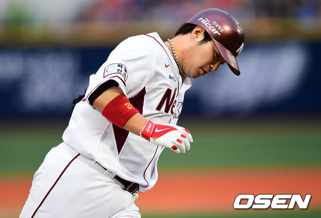 26일 오후 서울 목동구장에서 열린 '2014 한국야쿠르트 세븐 프로야구' 넥센 히어로즈와 삼성 라이온즈의 경기, 5회말 1사 주자없는상황에서 우중간 솔로 홈런을 날린 박병호가 그라운드를 돌고 있다.