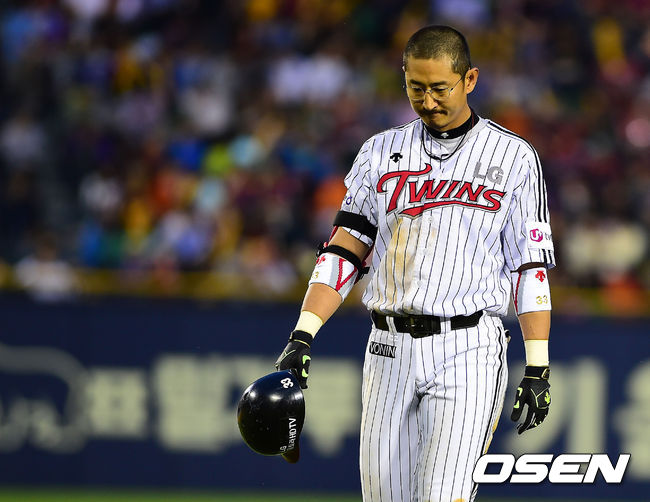 7회말 공격을 마치고 더그아웃으로 들어으는 LG 박용택이 아쉬운 표정을 짓고 있다.