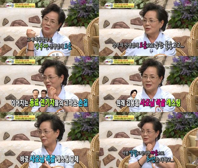 이어 "이순재, 조형기 등 동료 배우분들이 많이 도와주셨다"라면서 "이후 SBS 드라마 '세 번 결혼한 여자'에서도 강부자 덕분에 식모 역할이라도 할 수 있었다"라고 덧붙였다.