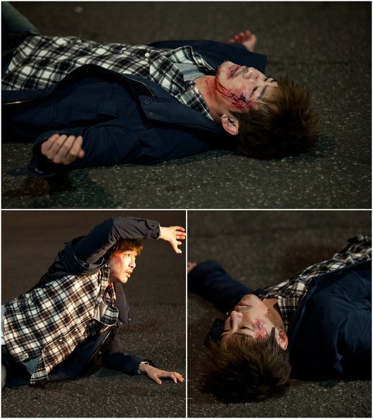 강지환은 27일 '골든크로스' 제작진을 통해 촬영 모습을 공개했다. 사진 속 강지환은 머리에 피를 흘리며 버려져 있는 위태로운 모습.