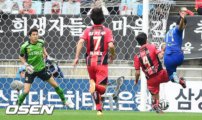 27일 오후 수원 월드컵경기장에서 열린 '현대오일뱅크 K리그 클래식 2014' 수원 삼성과 FC 서울의 경기 전반 수원 정대세가 슛을 시도하고 있다.