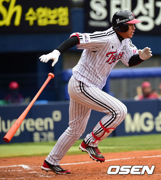 27일 오후 서울 잠실야구장에서 열린 ‘2014 한국야쿠르트 세븐 프로야구’ LG 트윈스와 KIA 타이거즈의 경기, 8회말 1사 주자 1,3루 LG 이병규가 2루수 앞 1타점 역전 적시타를 날리고 있다.