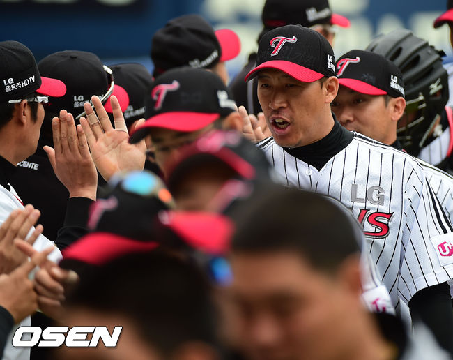 경기를 마치고 LG 이병규가 코치들과 하이파이브를 하고 있다. /rumi@osen.co.kr