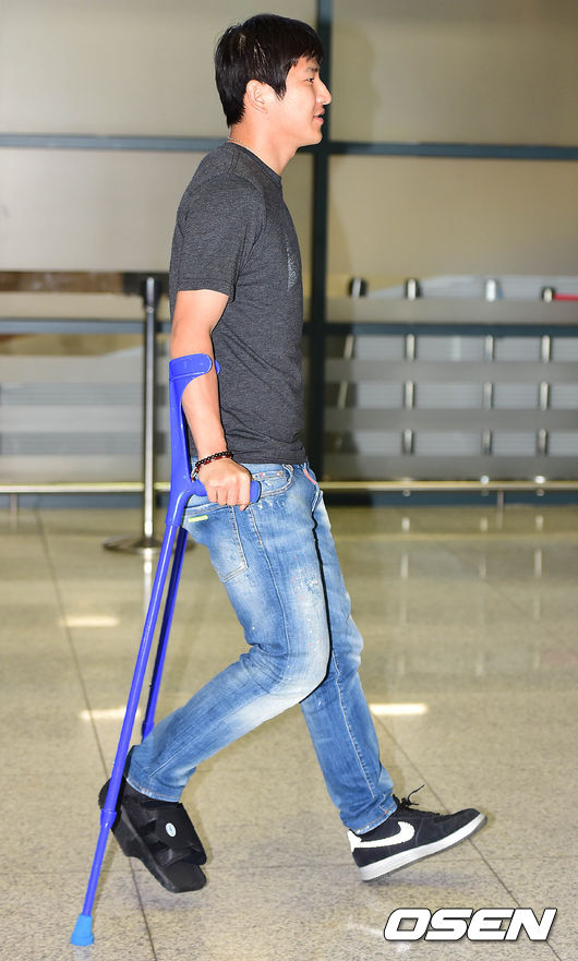 봉와직염 부상으로 국내에서 치료 및 훈련을 준비하는 박주호(27, 마인츠)가 28일 오후 인천공항을 통해 귀국해 취재진과 인터뷰 시간을 갖기 위해 발걸음을 옮기고 있다.