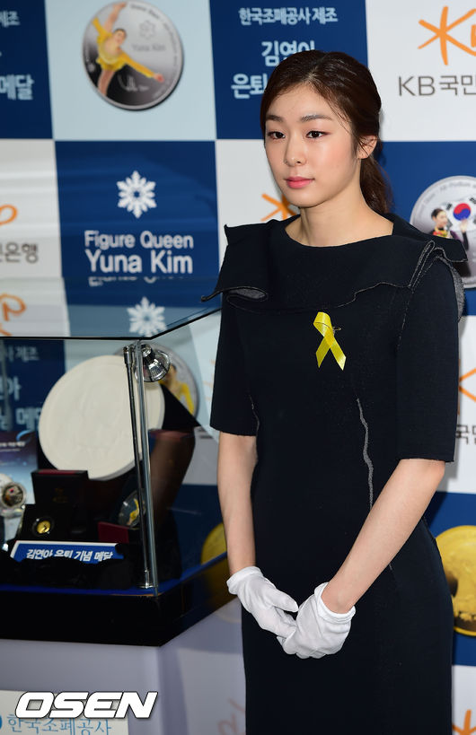 김연아,'가슴에 노란 리본을 달고 은퇴 기념 메달 행사 참석'