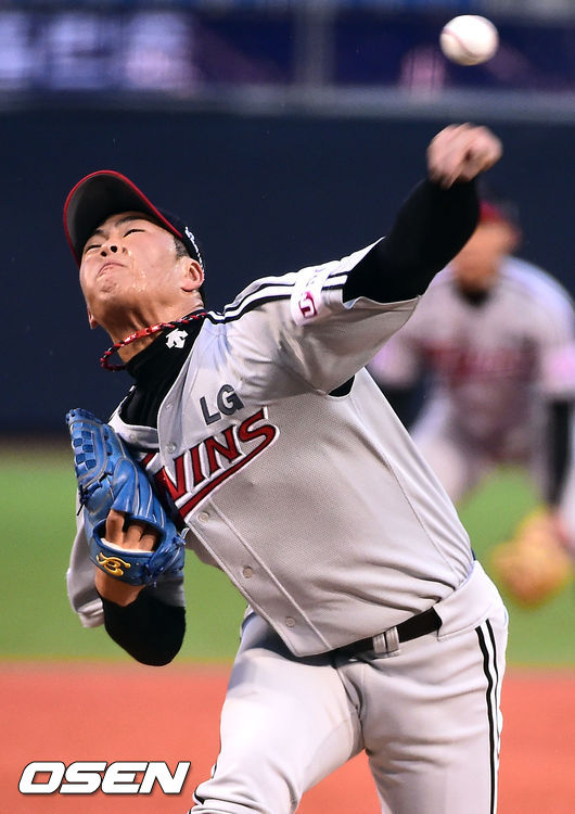 29일 오후 경남 마산구장에서 열린 '2014 한국야쿠르트 세븐 프로야구' NC 다이노스와 LG 트윈스의 경기, 1회말 LG 임지섭 선발투수가 역투하고 있다.