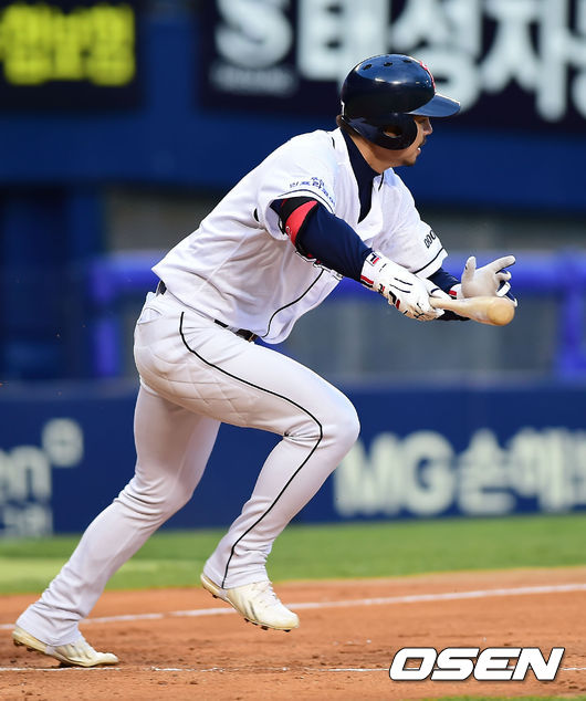 29일 오후 서울 잠실야구장에서 열린 ‘2014 한국야쿠르트 세븐 프로야구’ 두산 베어스와 넥센 히어로즈 경기, 2회말 무사 주자 1,2루 두산 오재원이 희생번트에 성공하고 있다.